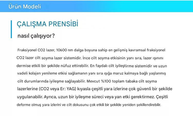 Fraksiyonel CO2 Lazer Cihazı, cilt yenileme, leke giderme ve iz tedavisinde altın standarttır. Mikro termal hasar alanları oluşturarak cildin kendini yenilemesini sağlar; etkili, güvenli ve hızlı sonuçlar sunar.